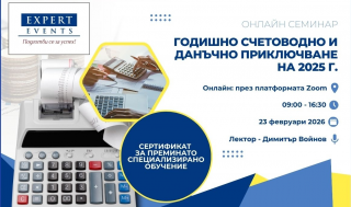23 февруари 2026 Online Оналйн семинар: „Годишно счетоводно и данъчно приключване на 2025 г. по ЗКПО. Промени в ЗКПО. Въпроси по въвеждане на еврото. Данъчна и съдебна практика по ЗКПО“ -