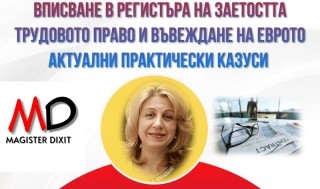 30 октомври 2025 Online ВЪЗНИКВАНЕ И ИЗМЕНЕНИЕ НА ТРУДОВОТО ПРАВООТНОШЕНИE И ВПИСВАНЕТО НА СКЛЮЧЕНИТЕ И ИЗМЕНЕНИТЕ ТРУДОВИ ДОГОВОРИ В ЕЕТЗ. ТРУДОВИТЕ ПРАВООТНОШЕНИЯ И ВЪВЕЖДАНЕ НА ЕВРОТО -