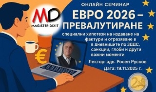 19 ноември 2025 Online Евро 2026 – превалутиране, специални хипотези на издаване на фактури и отразяване в дневниците по ЗДДС, санкции, глоби и други важни моменти -