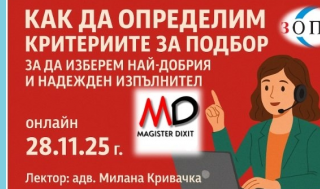 28 ноември 2025 Online Определяне критерии за подбор на изпълнител по ОП -
