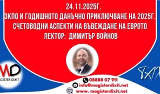 24 ноември 2025 Online ЗКПО и годишното данъчно приключване на 2025г. Счетоводни аспекти на въвеждане на еврото -