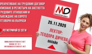 25 ноември 2025 Online Прекратяване на трудовия договор. Вписване в Регистъра на заетостта. Трудовите отношения и въвеждане на еврото -