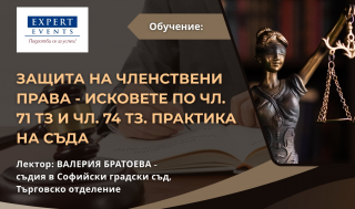 11 февруари 2026 Online Онлайн обучение: „Съдебна защита на членствени права в търговски дружества. Исковете по чл. 71 ТЗ и чл. 74 ТЗ. Съдебна практика“ -