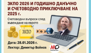 28 януари 2026 Online ЗКПО 2026 Годишно данъчно и счетоводно приключване на 2025г. Счетоводни въпроси след въвеждане на еврото. -