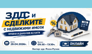 29 април 2026 Online ЗДДС и сделките с недвижими имоти. Правни и данъчни аспекти. -